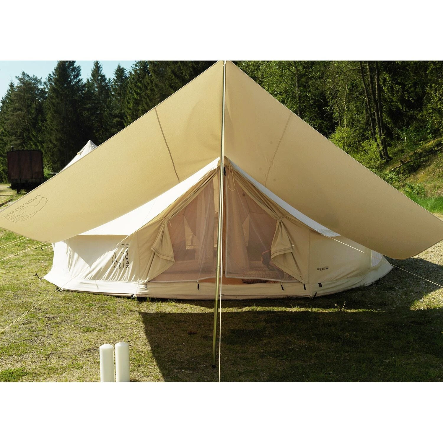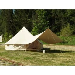 Stort og ekstremt rummeligt telt i klokkeformet lavvu-design med en klassisk bomuld-/polyesterblanding. Suveræn komfort og masser af lejrluksus for en gruppe på 4-10 personer.